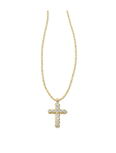 CROSS CRYSTAL PENDANT NECKLACE GOLD WHITE CRYSTAL