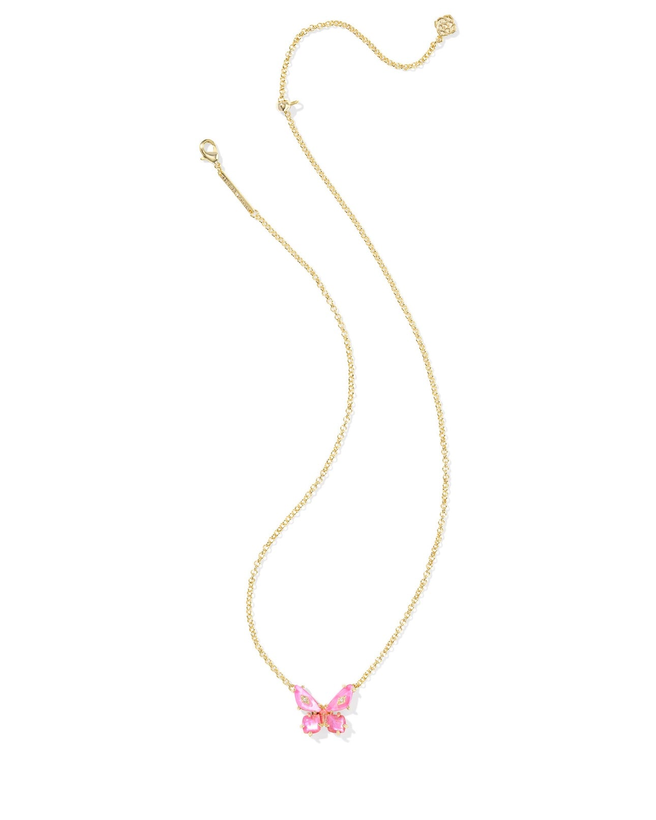 Add a touch of romance to any necklace stack with the Bianca Butterfly Gold Pink Mix Short Pendant Necklace. Featuring an artfully arranged butterfly shape made of color-coordinated stones with sparkling beauty marks, this necklace is a must-have for your collection.