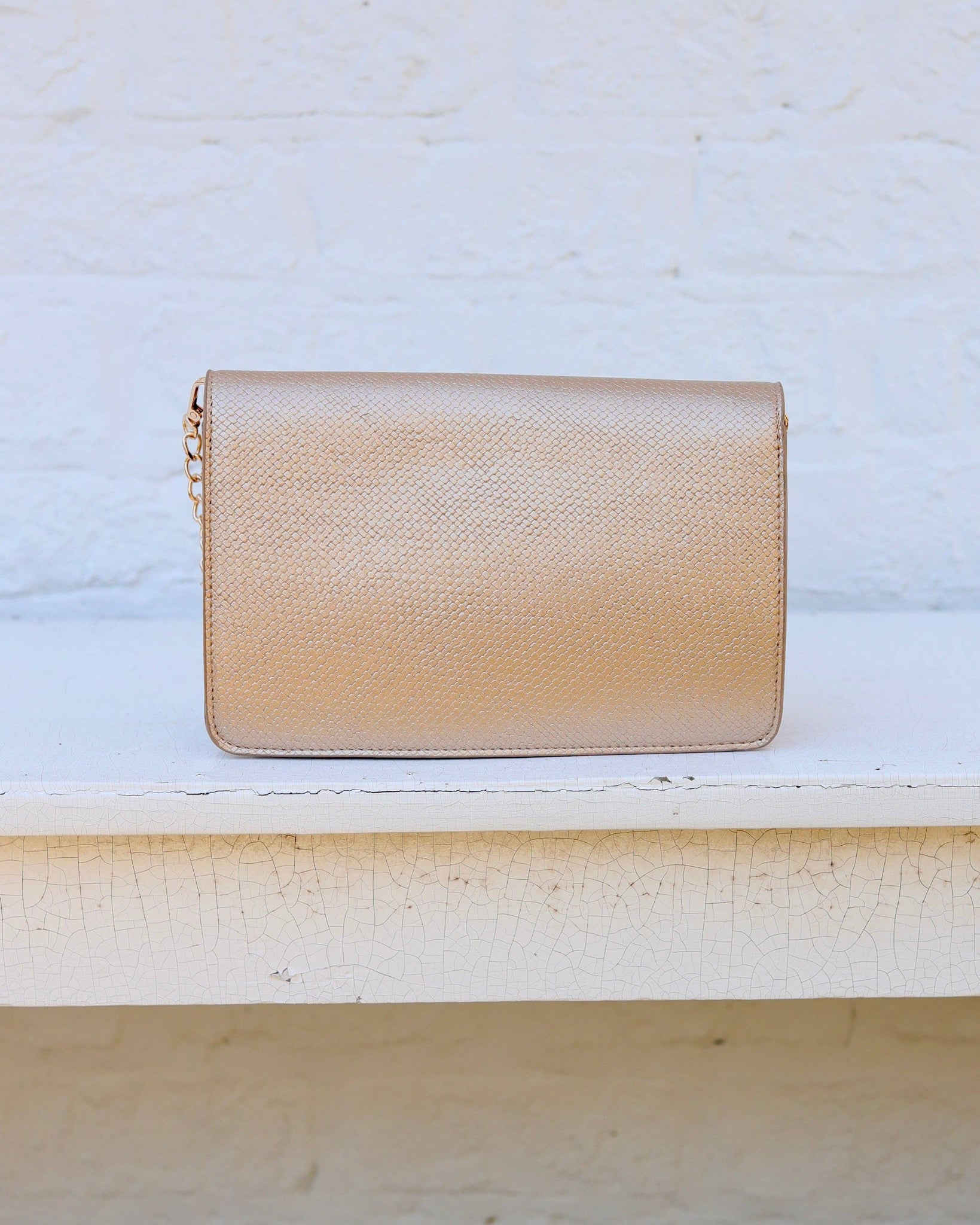 This woven vegan leather crossbody is equipped to keep you organized! There are built in credit card slots inside as well as a zippered pocket and open pocket. It features the signature, shiny gold Caroline Hill logo on the front magnetic flap. The chain crossbody strap has a strip of matching material to sit comfortably on your shoulder. It can also be removed to carry as a stylish clutch. Great for events or everyday wear!