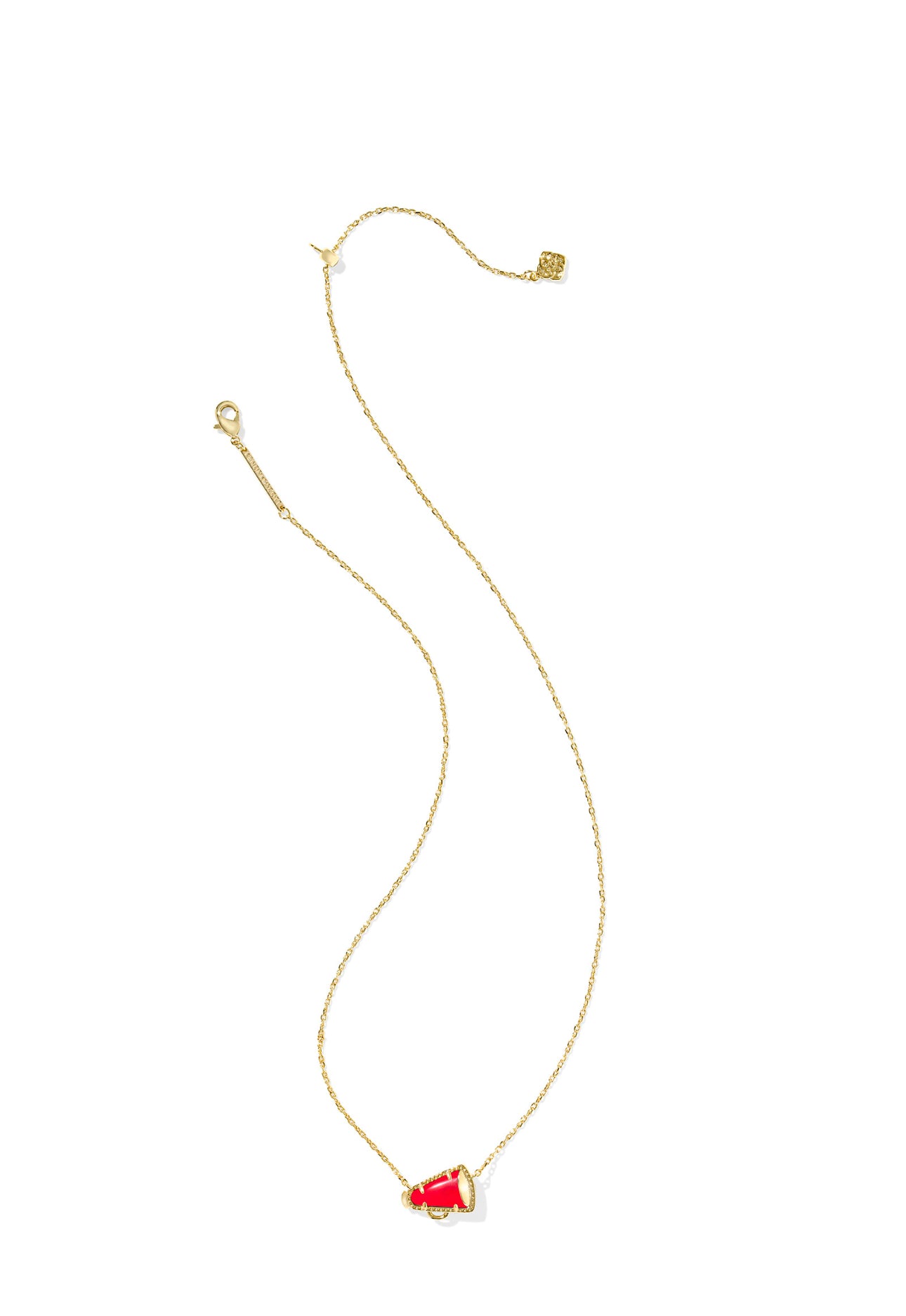 Give me a K! Give me an S! Give me a Cheer Gold Short Pendant Necklace in Red Illusion! Minimal but full of cheer, this adorable megaphone pendant is framed by our signature hoofprint detailing for that special KS touch. Stack up some extra spirit and pair this pendant with styles in your team’s colors
