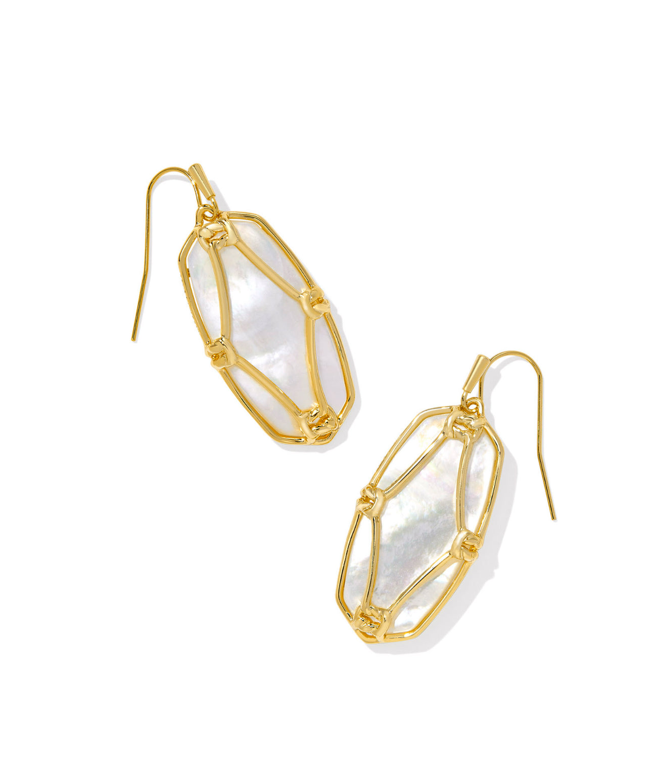 Our iconic eye-catching earrings have a new artistic twist in the Elle Lattice Frame Gold Drop Earrings in Ivory Mother of Pearl. With a new metalwork technique inspired by the texture of lace, these earrings were made to stand out with a bold elegance and beautiful colors that fit into any collection.