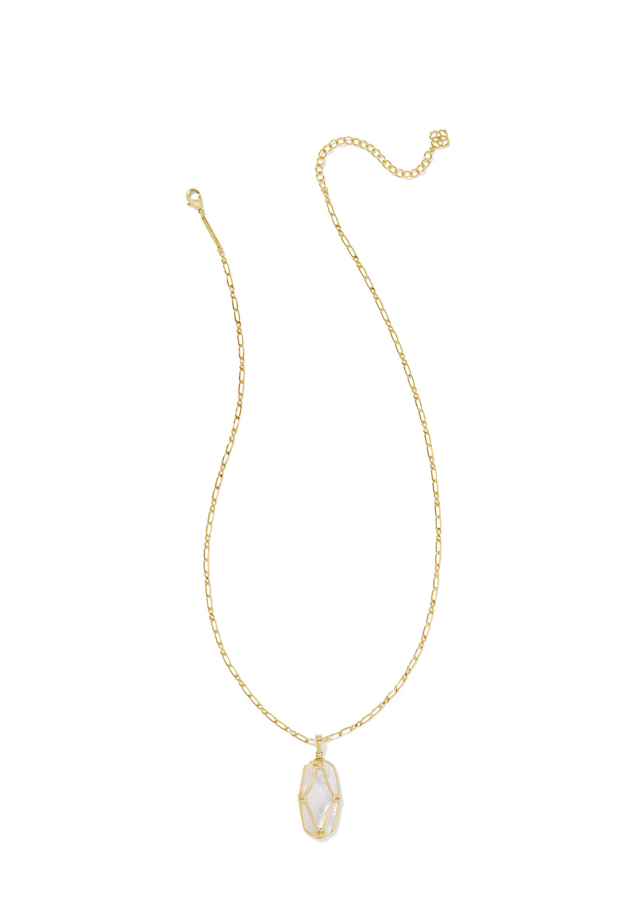An icon gets all dressed up in the Elle Lattice Frame Gold Large Long Pendant Necklace in Ivory Mother of Pearl. Featuring our classic eye-catching pendant framed in intricate latticed metalwork on a unique figaro style chain, this piece is ready to be the focal point of your necklace stack.