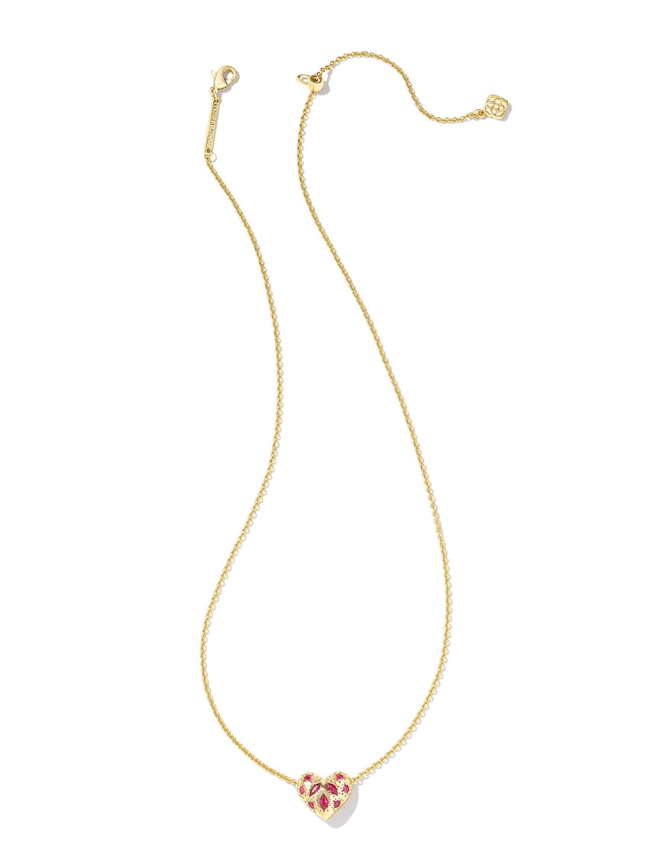 Meet the Holland Gold Heart Short Pendant Necklace in Pink Crystal, the epitome of understated elegance. As radiant as it is romantic, this sleek metal heart is adorned with flush-set crystals in round and marquise shapes and embellished with bright-cut decorative engravings. Styled, stacked, or gifted, this pendant is too sweet to pass up.