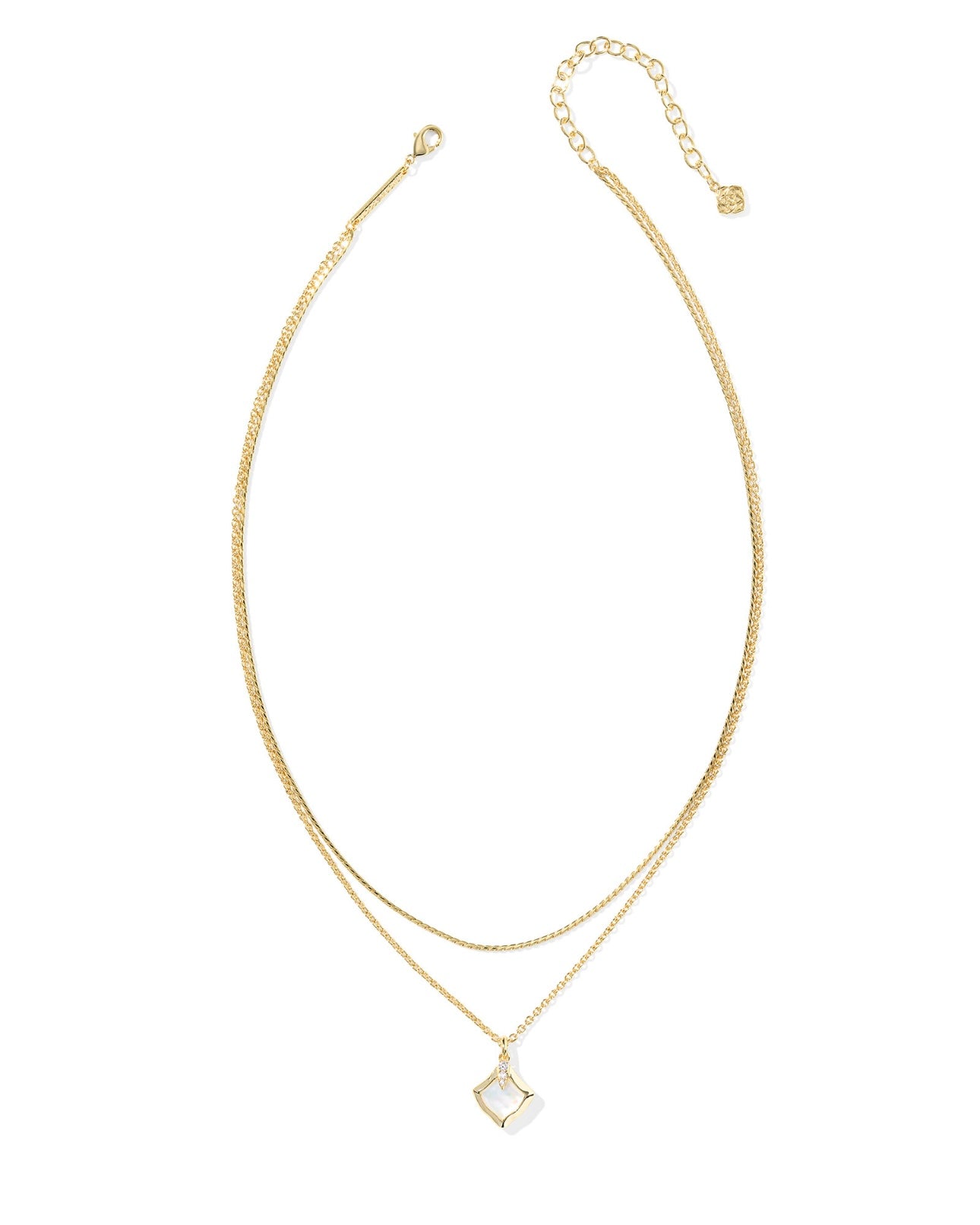 Get the layered look all in one style with the Joelle Gold Ivory Mother of Pearl Multi Strand Necklace. This two-strand stunner features a fresh take on our archival Alexandra shape, now with a sleek metal frame and cubic zirconia detailing for extra sparkle. To make it a matching look, pair this necklace with the Joelle Drop Earrings and Joelle Cuff Bracelet.