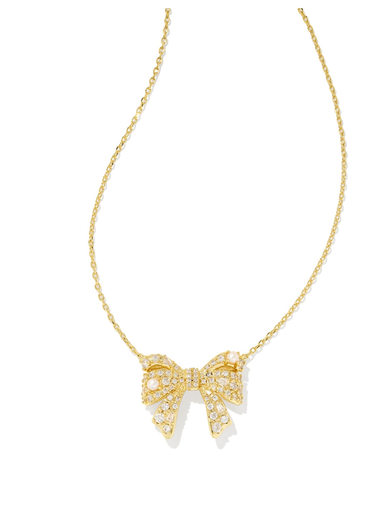 KRISTA BOW SHORT PENDANT NECKLACE GOLD WHITE MIX