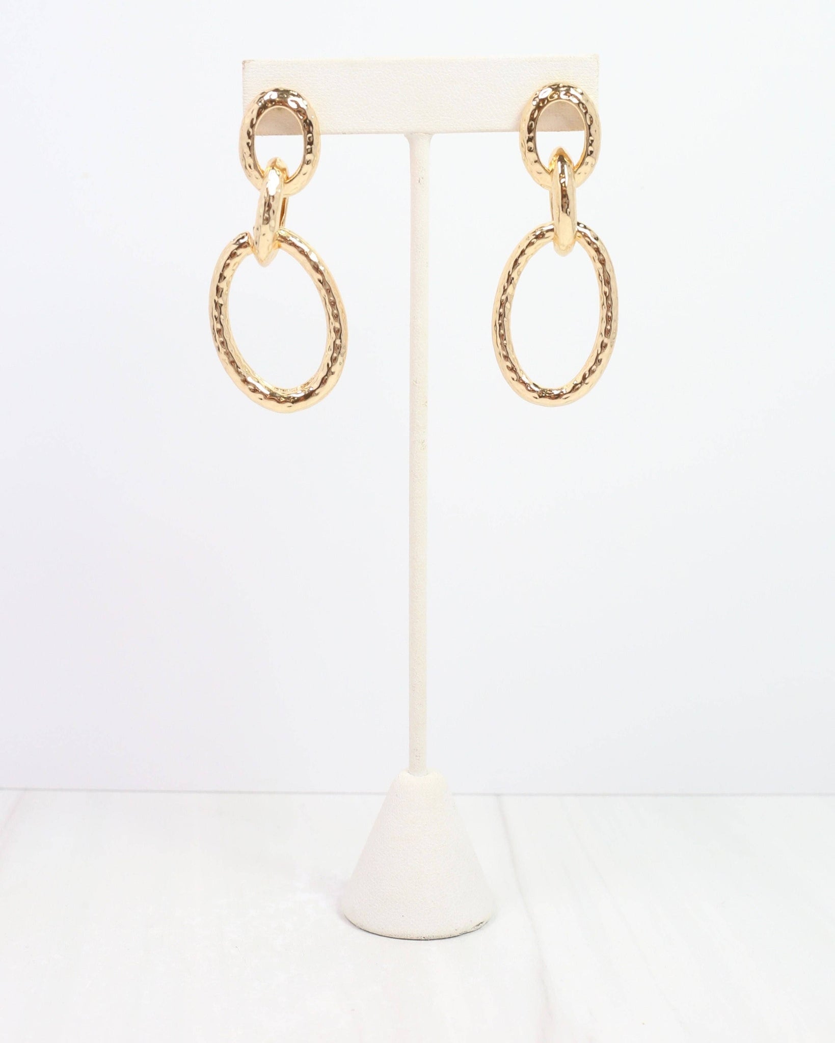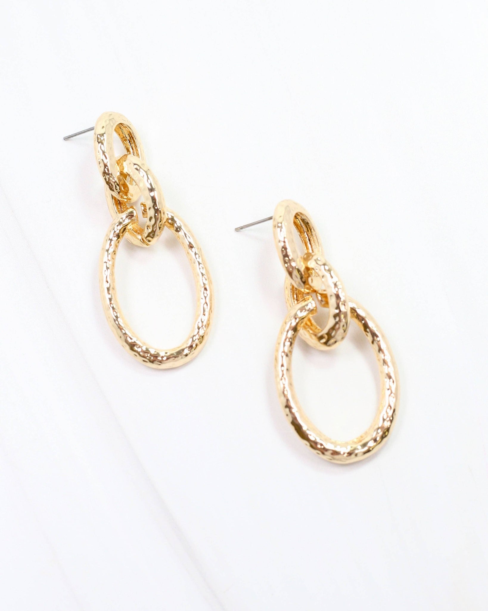 Add a touch of playful elegance with the Lucinda Link Earrings in gleaming gold. Featuring three shiny oval links with a textured finish, these statement earrings bring a fun twist to any outfit. Perfect for adding a refined yet lively sparkle to your look!