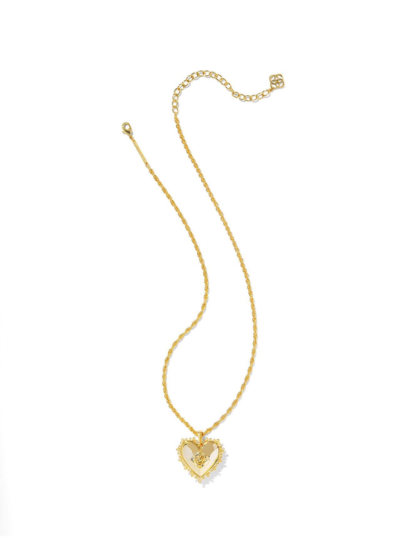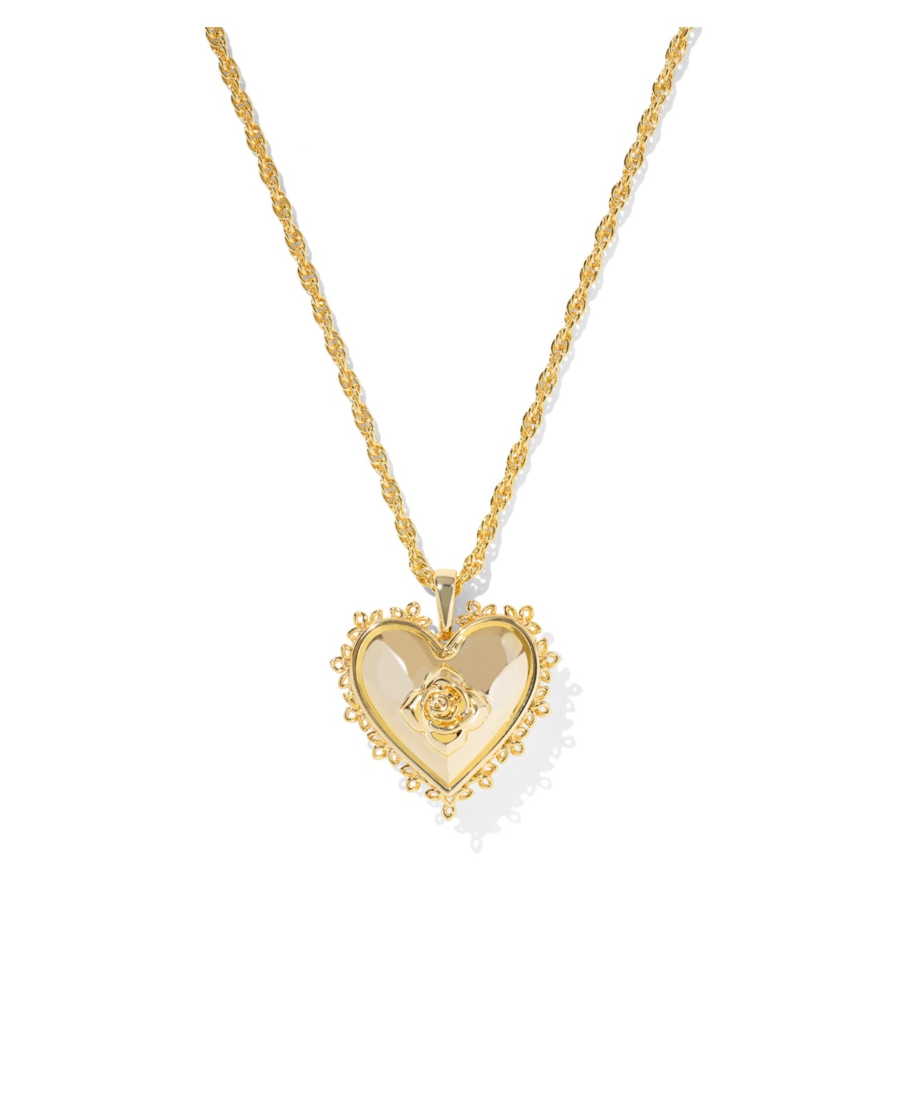 Get the ultimate vintage look with the Mallory Rose Locket Short Pendant Necklace in Gold. Featuring a rose silhouette inspired by our signature medallion logo inside of a heart surrounded with lace, this piece is perfect for a sophisticated look or as an elegant touch for an everyday outfit—making it so ready to be your new favorite