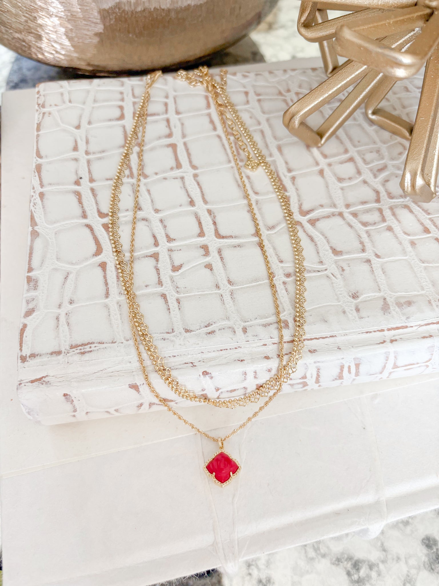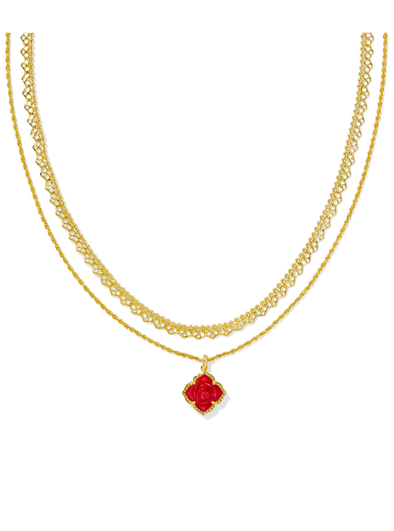 Your next favorite necklace stack is layered up for you with the Mallory Rose Gold Multi Strand Necklace in Red Mother of Pearl. A rose pendant inspired by our signature medallion logo serves as the focal point of this necklace, perfectly paired with a lace-inspired chain, to give your look a subtle touch of elegance and romantic radiance. Styling tip: Keep the sculptural floral vibes going by pairing this necklace with the Mallory Rose Huggie Earrings.