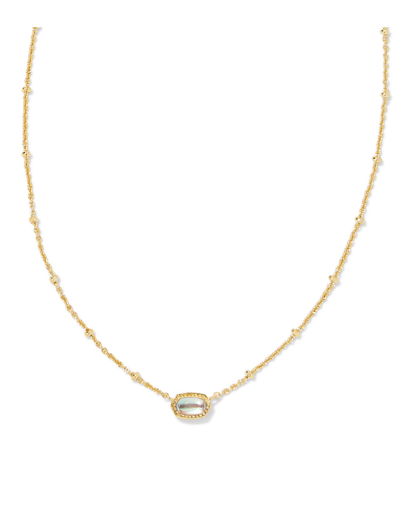 Our bestselling icon goes daintier (and cuter!) than ever in the Mini Elisa Gold Satellite Short Pendant Necklace in Dichroic Glass. Set on a textured satellite chain, this take on our signature shape is perfect for those with a more minimal aesthetic or anyone wanting to add some color to their layers.