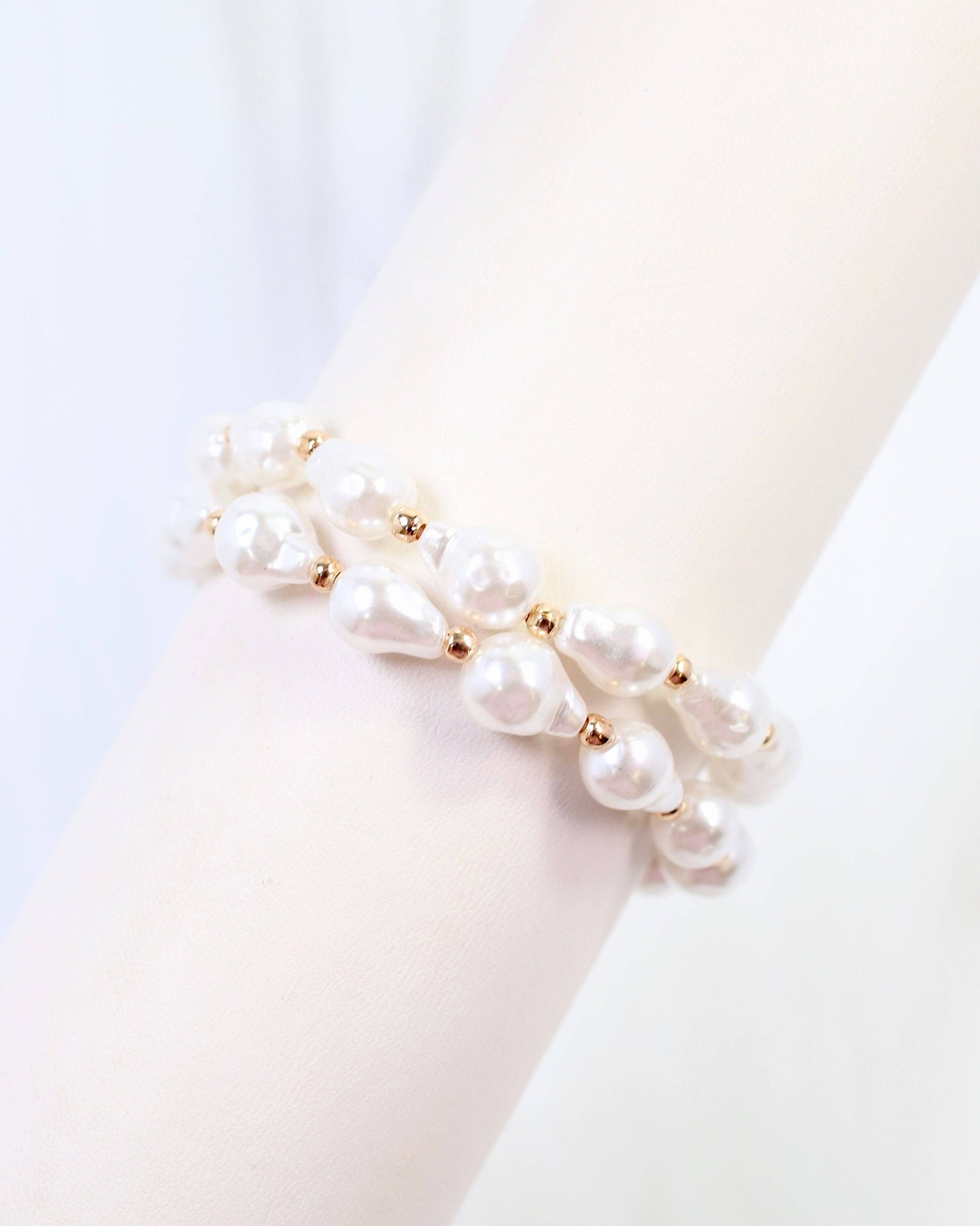 Add luminous elegance to your wrist with the Rye Baroque Pearl Stretch Bracelet in cream. Featuring organic baroque pearls in a soft cream tone, this bracelet brings refined sophistication and natural beauty to any look. The comfortable stretch fit makes it effortless to wear, while the timeless pearl aesthetic works beautifully with both casual and formal styles.